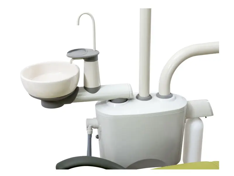 It comes standard with a one piece rotating cuspidor, Torch LED Light, Chair Controls for doctor and Assistant Side and a clean water bottle system. The ergonomic design of the chair allows you to work efficiently at 9, 10, 11 or 12 o’clock positions without any obstructions. Available in both NA and Continental Style delivery systems.